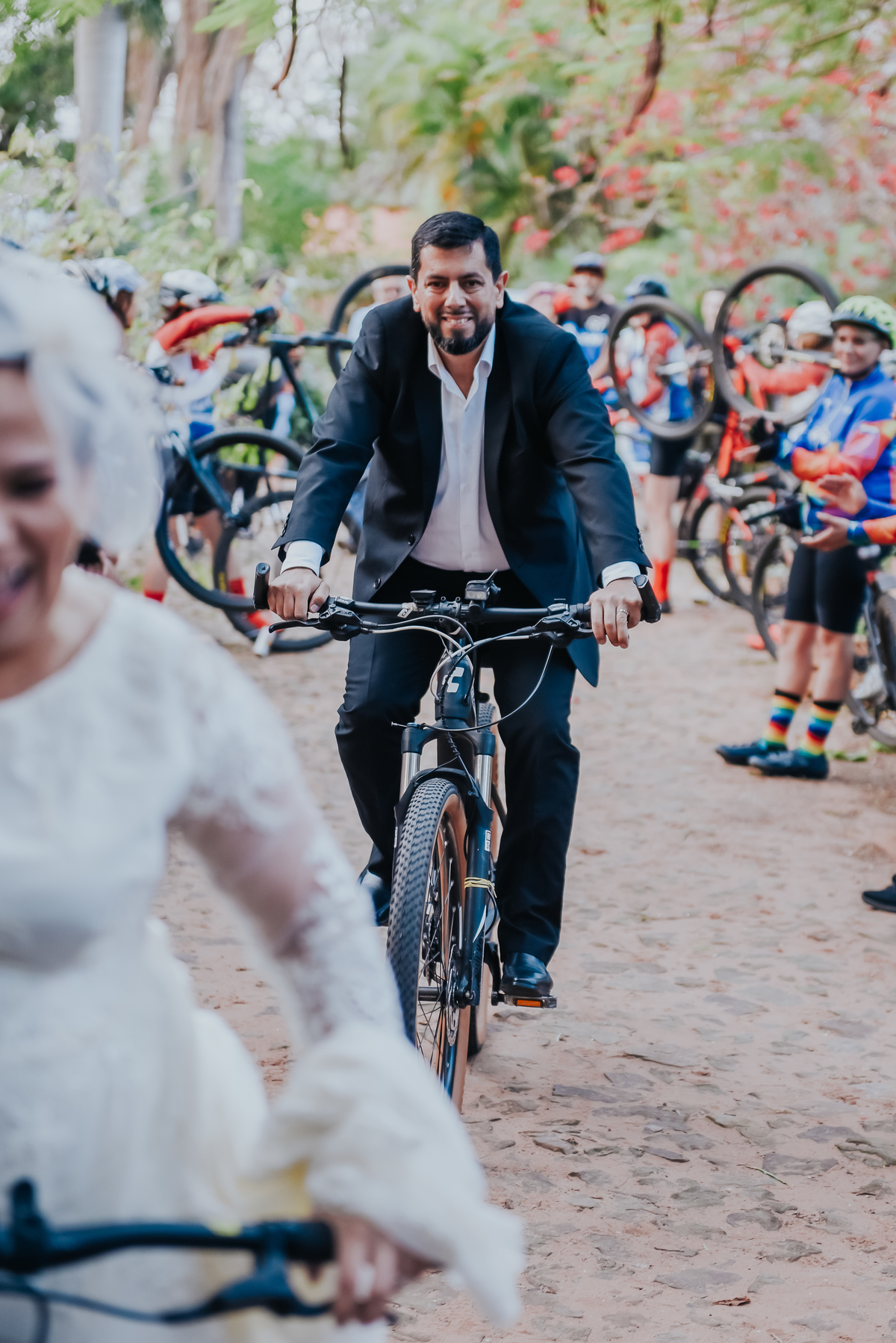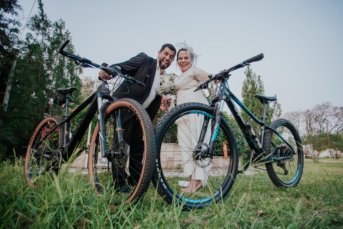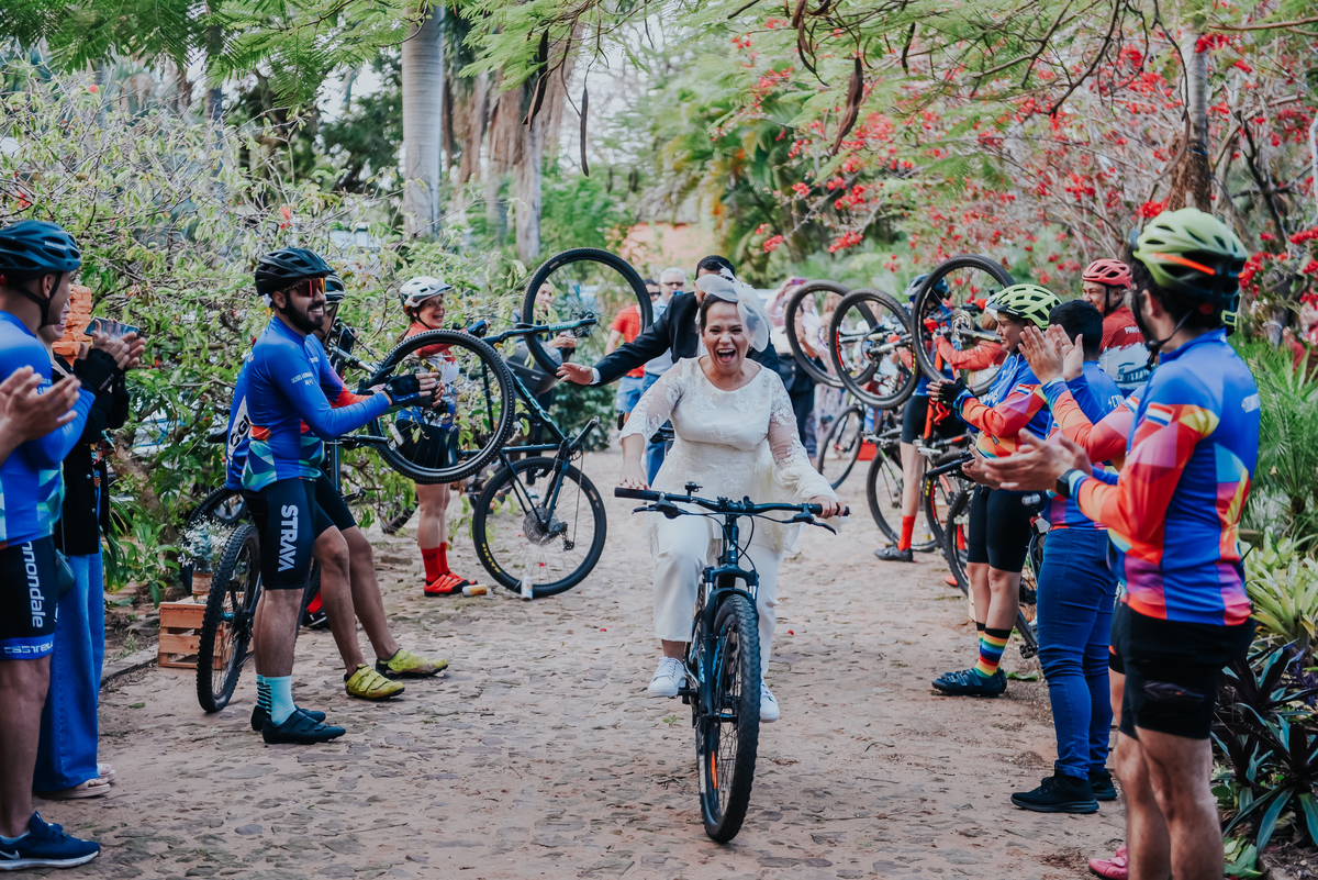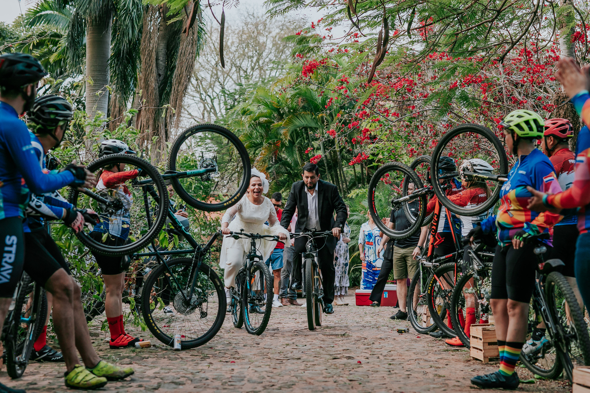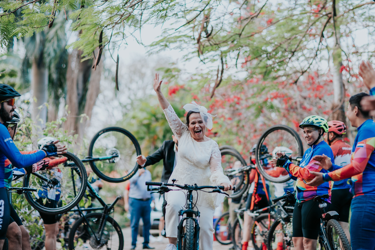 Esta boda refleja tal cual son ellos, Ade y Beto se conocieron pedaleando y fiel a sus pasiones entraron obviamente pedaleando para iniciar una nueva vida juntos.